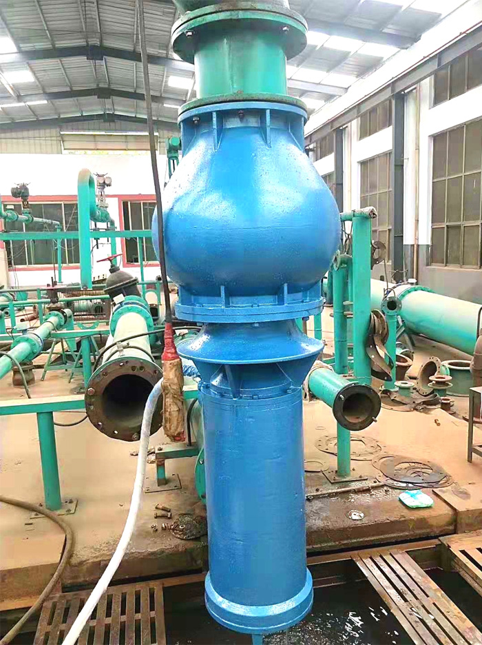 半岛平台流量1000吨扬程15米功率75KW潜水轴流泵校验成功。
