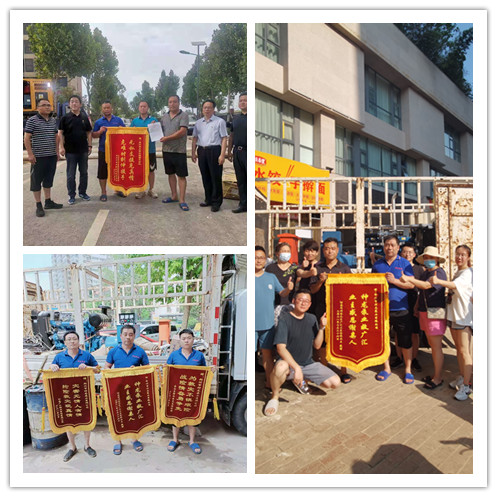 半岛平台自7月21日以来,在郑州各个小区组织地下室排水工作24小时不间断轮班制的深水里进行排水作业,各被救援小区居民争相制作锦旗感谢神龙排涝突击队。